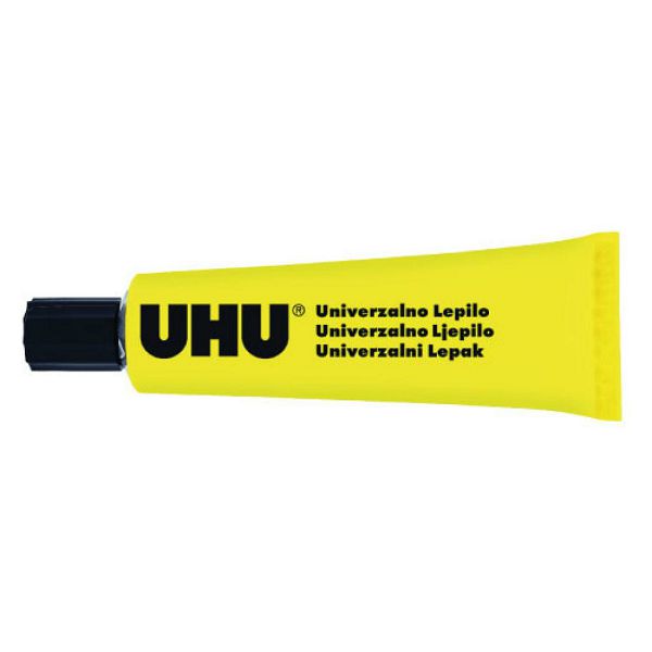 tuba; upotreba brza i jednostavna; za gotovo sve vrste materijala: drvo, karton, papir, koža, tekstil, keramika, staklo, porculan, kamen, metal, pluto…